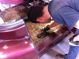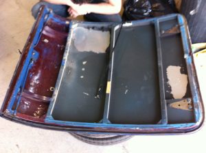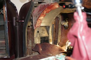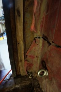She starts to come apart in earnest, including removal of much of the interior and a start on replacing sheet metal.