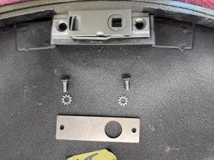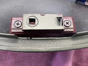 A new fastening plate had to be fabricated due to the botch job by one of the body shops “fixing” the budget lock fastening.