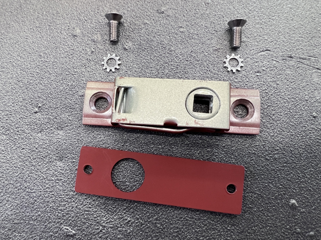The original budget lock and fastening machine screws.