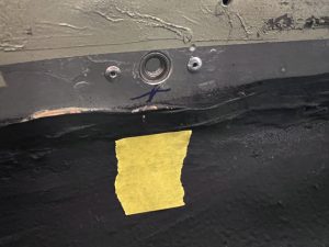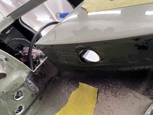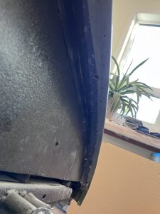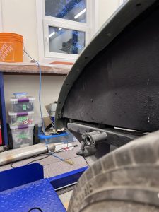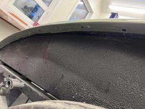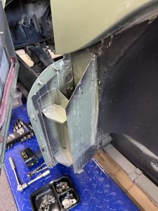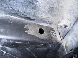 This one was a bit of a nightmare. The EPOCH 07 body shop had put in new sheet metal, leaving the old in place hence the to layers of metal shown here in the hole.