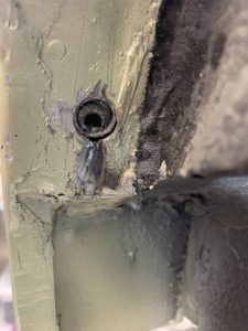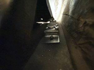 This bolt had been broken off by one of the body shops in the new captured nut. It was very difficult to remove as it was inaccessible and the captured nut spun in its casing.