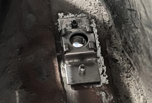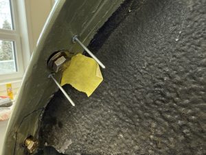 This one was also very tough to fasten as it too was nearly impossible to access. The rectangular galvanized plate was the drilling template.