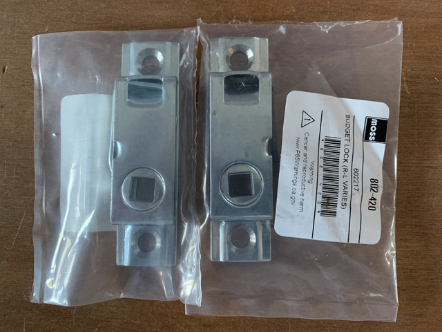 Proper spat locks finally arrive. Thank you Moss Motors!